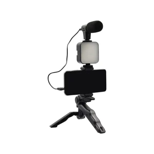 Complete AY-49 Vlogging Kit with microphone, LED fill light, tripod, and mobile holder – ideal for content creators, YouTubers, TikTokers & vloggers.